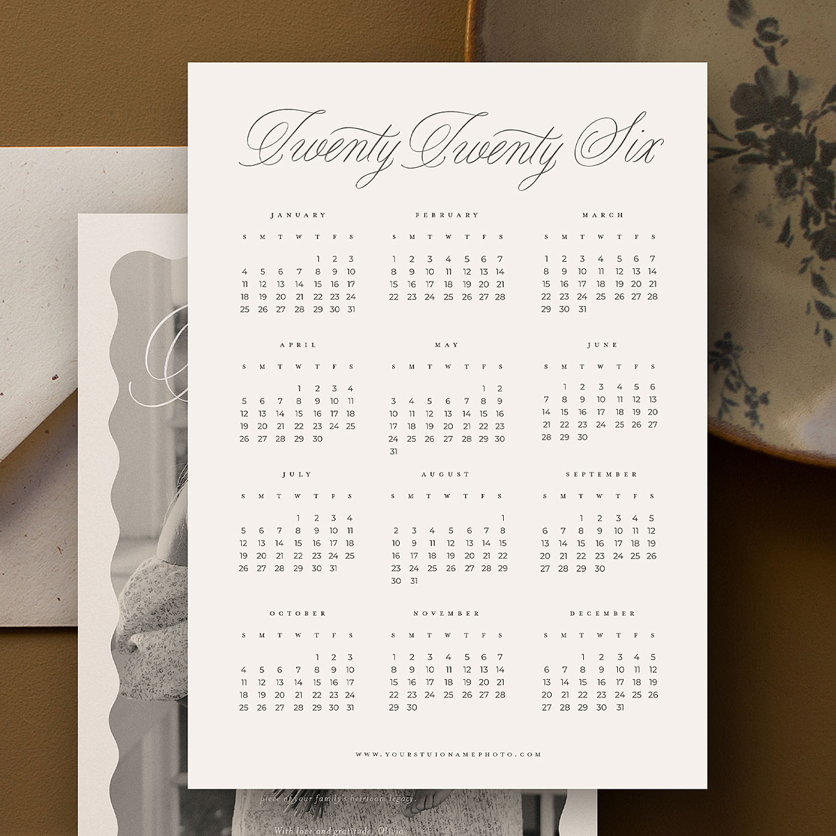 2026 Calendar Thank you 5×7 Card 6 features 2026 calendar on the back includes: