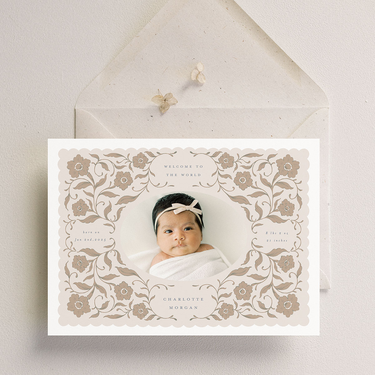 Curated Baby Birth Announcement 5×7 Cards BUNDLE is a set of 8 baby cards , designed for Photoshop only.